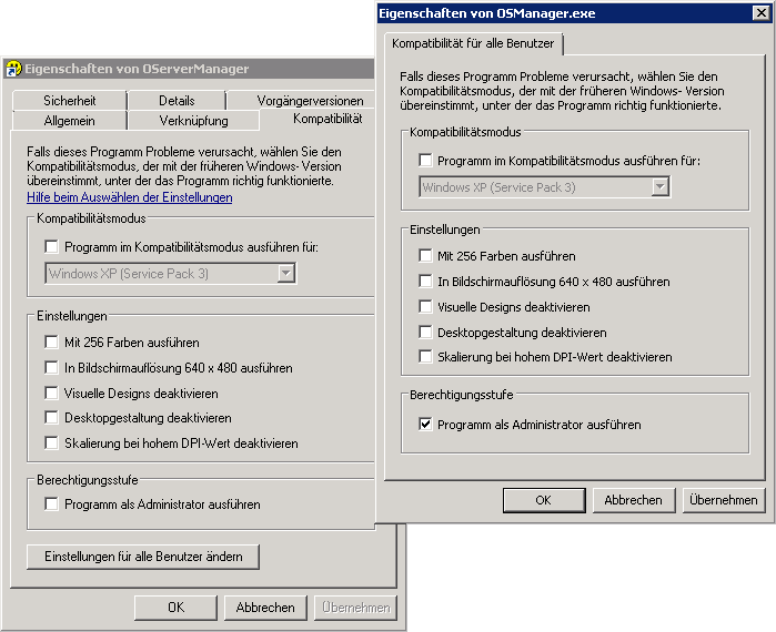 Dieses Benutzerkonto muss Vollzugriff auf das Programmverzeichnis des OServers besitzen. Dies sollte an dieser Stelle überprüft werden.