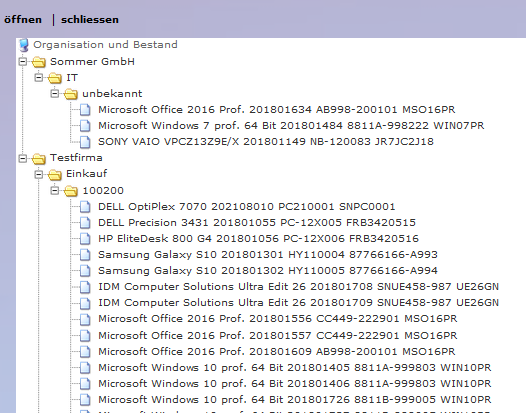 ModuleStandard KPIs und Treeviews Treeview Orga+Bestand Der Treeview "Orga+Bestand" zeigt die Organisationen entsprechend der Organisationsstruktur und die Bestandsdaten zu den Organisationen.