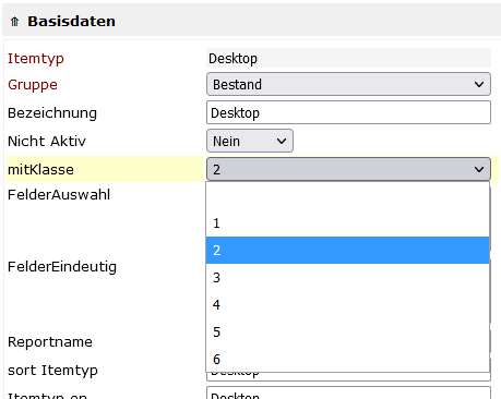 Die Auswahl der Klassifizierung erfolgt in der Verwaltung der Itemtypen: