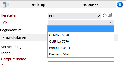 Klassen sind bei allen Itemtypen optional. Bei Bestandsitems werden im Standard Hersteller (Klasse1) und Typ (Klasse2) eingetragen. Die Klassifizierung dient der Gruppierung der Daten für eine schnelle Auskunft und aussagefähige Statistiken. Durch die vom Administrator verwalteten Klassen werden unterschiedliche Schreibweisen oder Tippfehler vermieden.